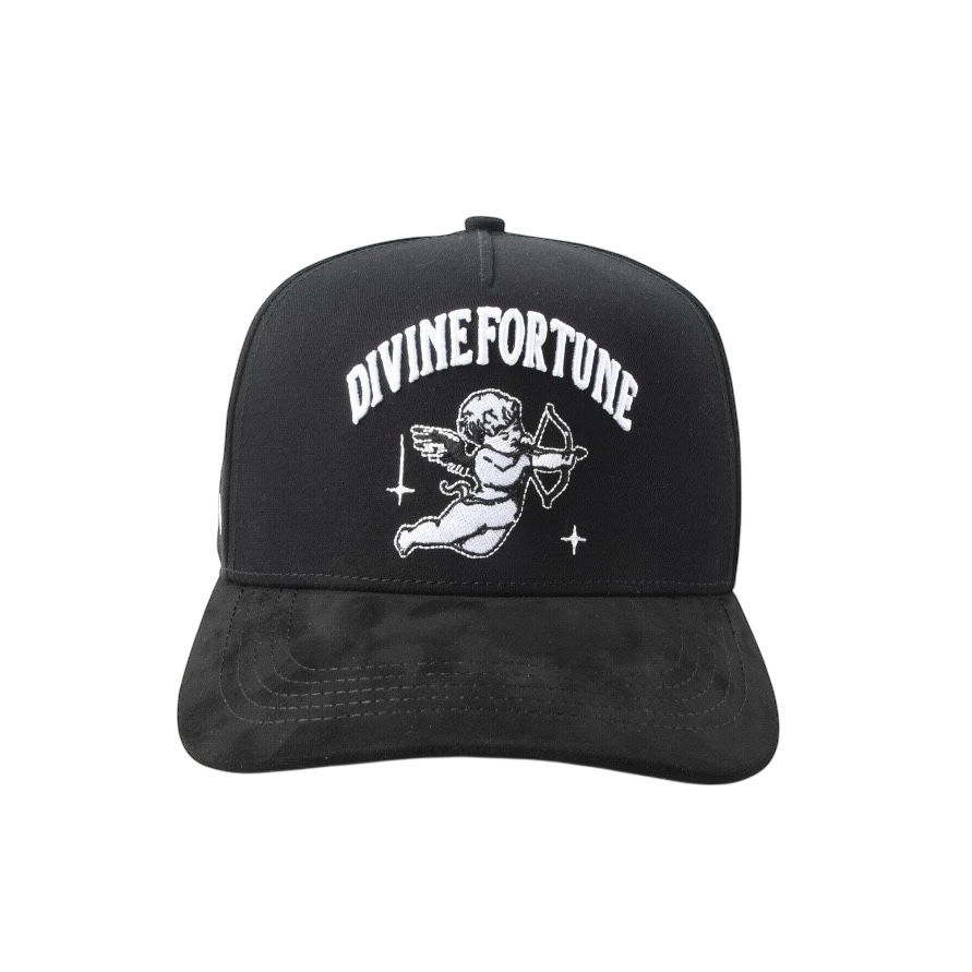 Una pieza que combina estilo, lujo y simbolismo. Su diseño bordado con ángeles, estrellas y la frase “Divine Fortune” representa protección, éxito y abundancia. En la parte trasera, la palabra “Blessed” refuerza el mensaje de grandeza y gratitud.